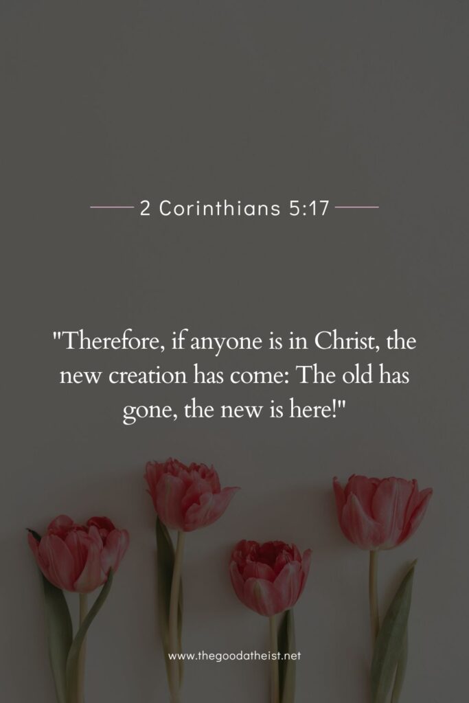 Spring is a time of renewal, and this verse reminds us that in Christ, we are made new. Just as the earth awakens from winter, our hearts can experience a fresh start through God’s grace. This verse encourages us to let go of the past and embrace the new life He offers, filled with hope and purpose.